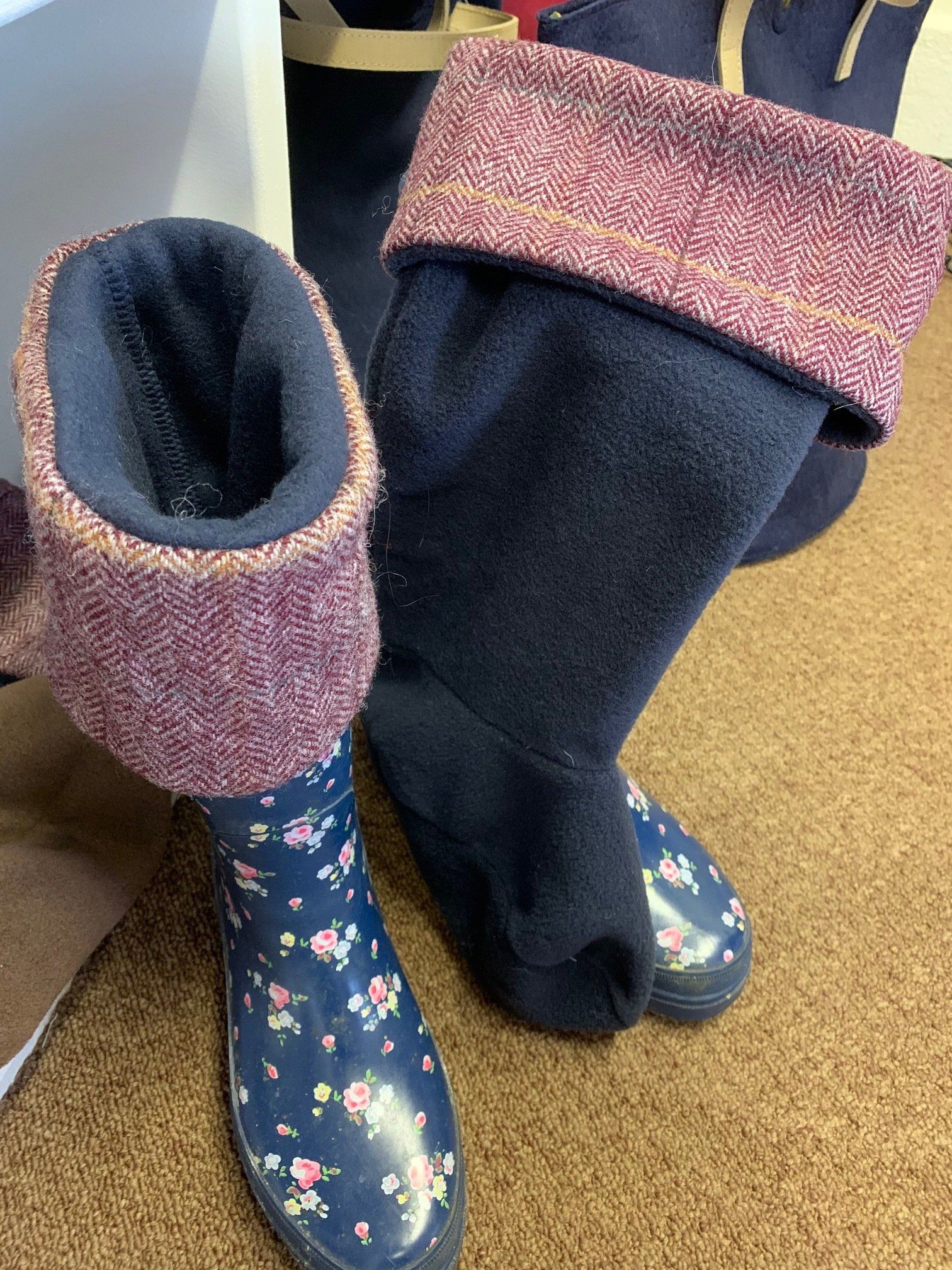 A range of Welsh wool products including welly warmers, canine items, rugs, throws, pram blankets, storage bags and tote bags.